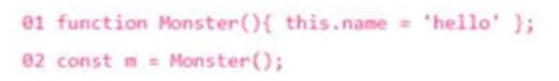 C. The m variable is assigned the correct object but this.name remains undefined.