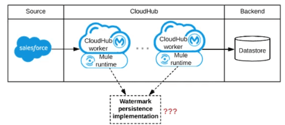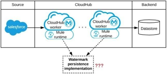 Since the application is deployed to several CloudHub workers, all workers must read from and write to the exact same watermark value. If each worker maintained its own watermark, they would interfere with each other, leading to missed updates or duplicates.
