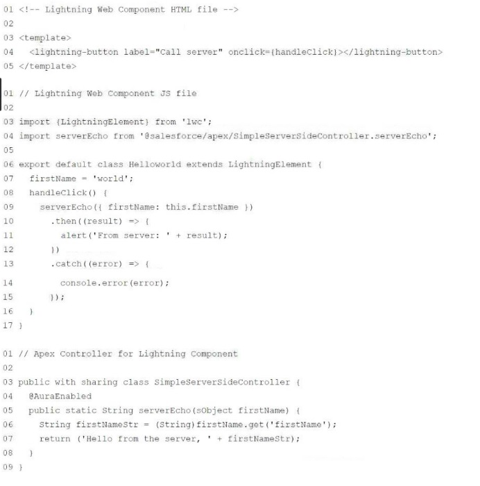 ✔ D. Remove line 06 from the Apex Controller and instead use firstName in the return on line 07.